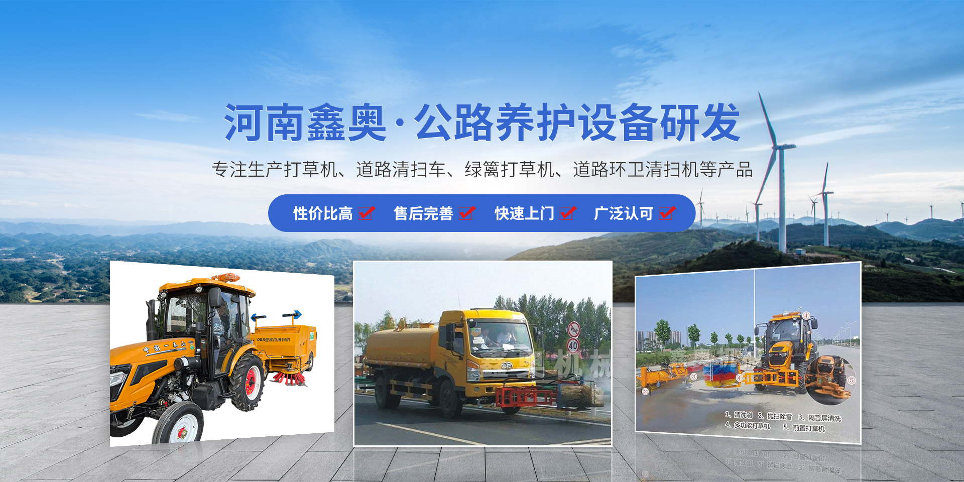 河南鑫奧機械制造有限公司位于“森林城市”京廣鐵路大動脈貫穿而過的新鄉(xiāng)。是一家生產(chǎn)打草機、道路清掃車、綠籬打草機、道路環(huán)衛(wèi)清掃機等產(chǎn)品的公司,集研發(fā)、制造、營銷及技術(shù)服務(wù)為一體的新技術(shù)企業(yè)。自2000年開始從事公路養(yǎng)護設(shè)備的研制開發(fā)與生產(chǎn)。于2007年通過資產(chǎn)組合成立了河南鑫奧機械制造有限公司?! ∥夜窘陙韴猿帧蚌螉W機械,源于公路”的理念,針對公路建設(shè)養(yǎng)護所需,我們的科技團隊先后研制了道路環(huán)......